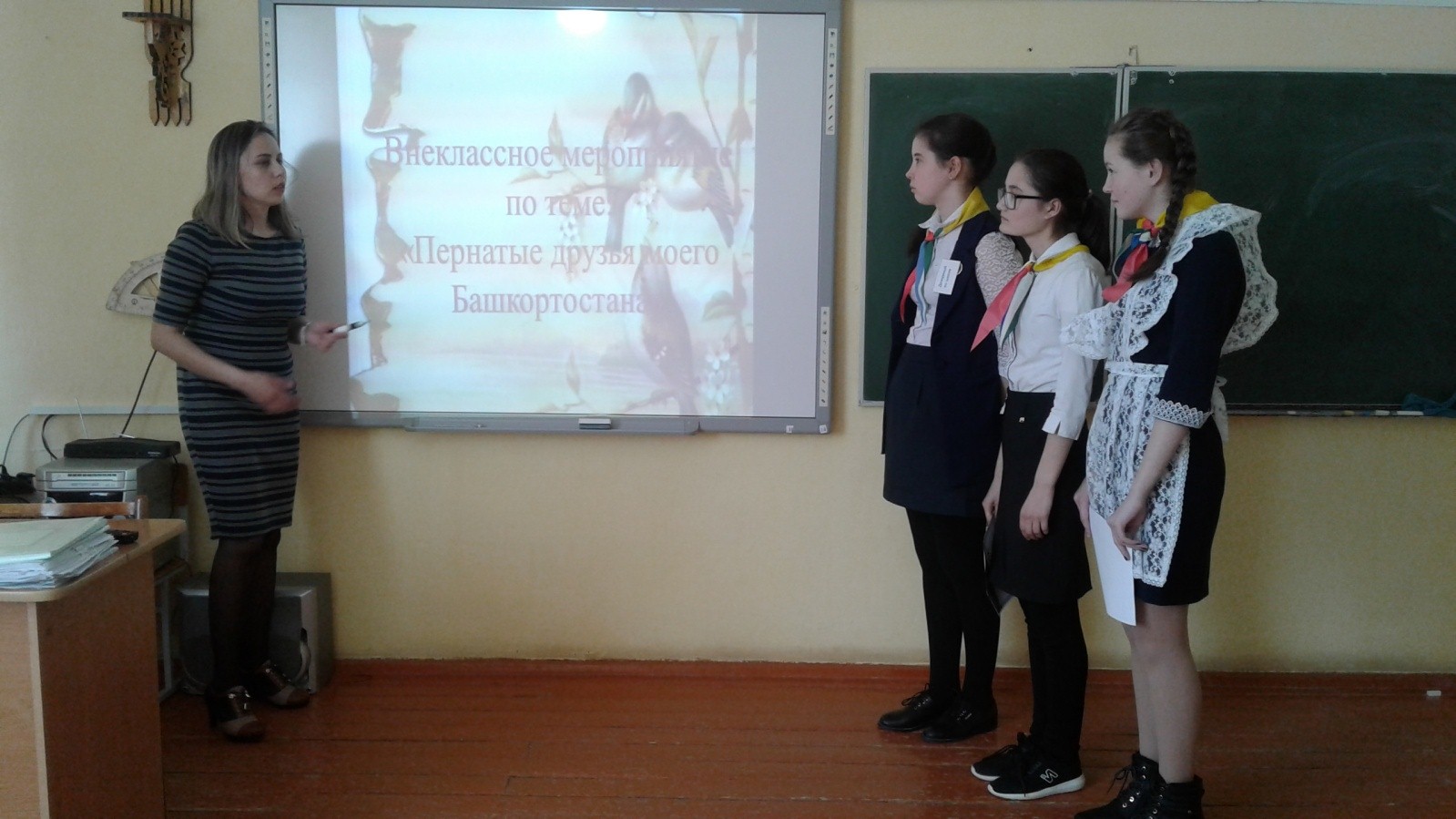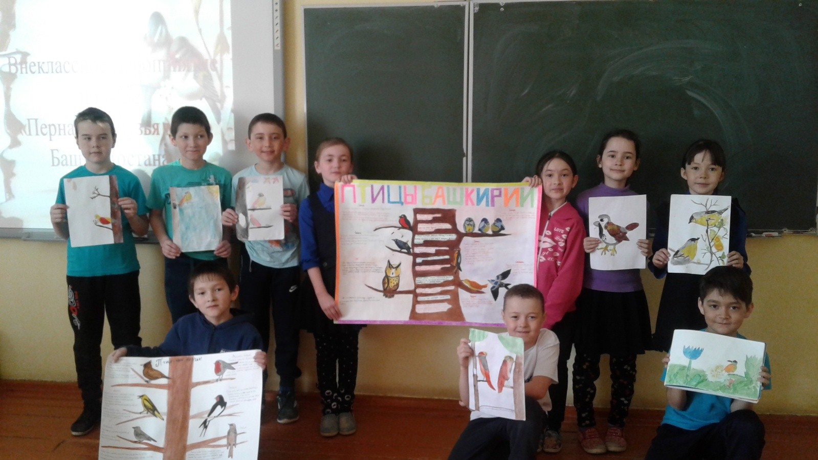 Среди учеников 5-7 классов было проведено внеклассное мероприятие «Пернатые друзья моего Башкортостана». Было очень много конкурсов: кроссворды, ребусы, загадки, ребята слушали птичьи голоса и отгадывали их, сочиняли стихотворения про птиц. Таким образом, проведенное мероприятие способствовало развитию интереса учеников по отношению к птицами и бережного отношения к ним.