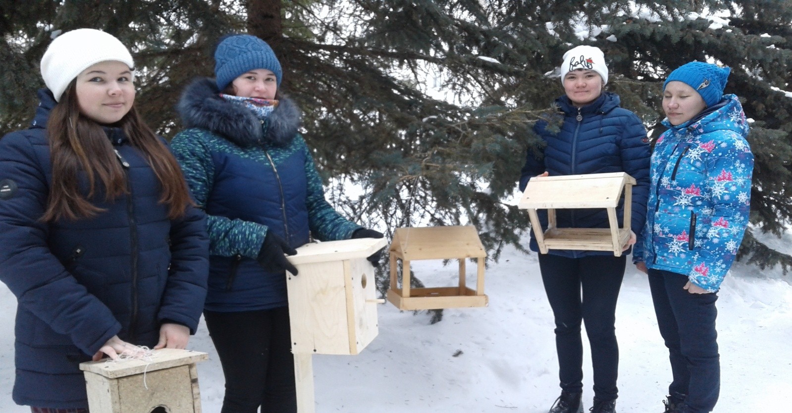 Зная, как тяжело приходится птицам зимой, ребята решили изготовить и развесить кормушки для птиц. Дети не забывают наполнять кормушки свежим кормом. Наблюдение за пернатыми друзьями во время их трапезы доставляет детям огромную радость! Полакомиться прилетают воробьи и синицы, голуби и другие птицы.